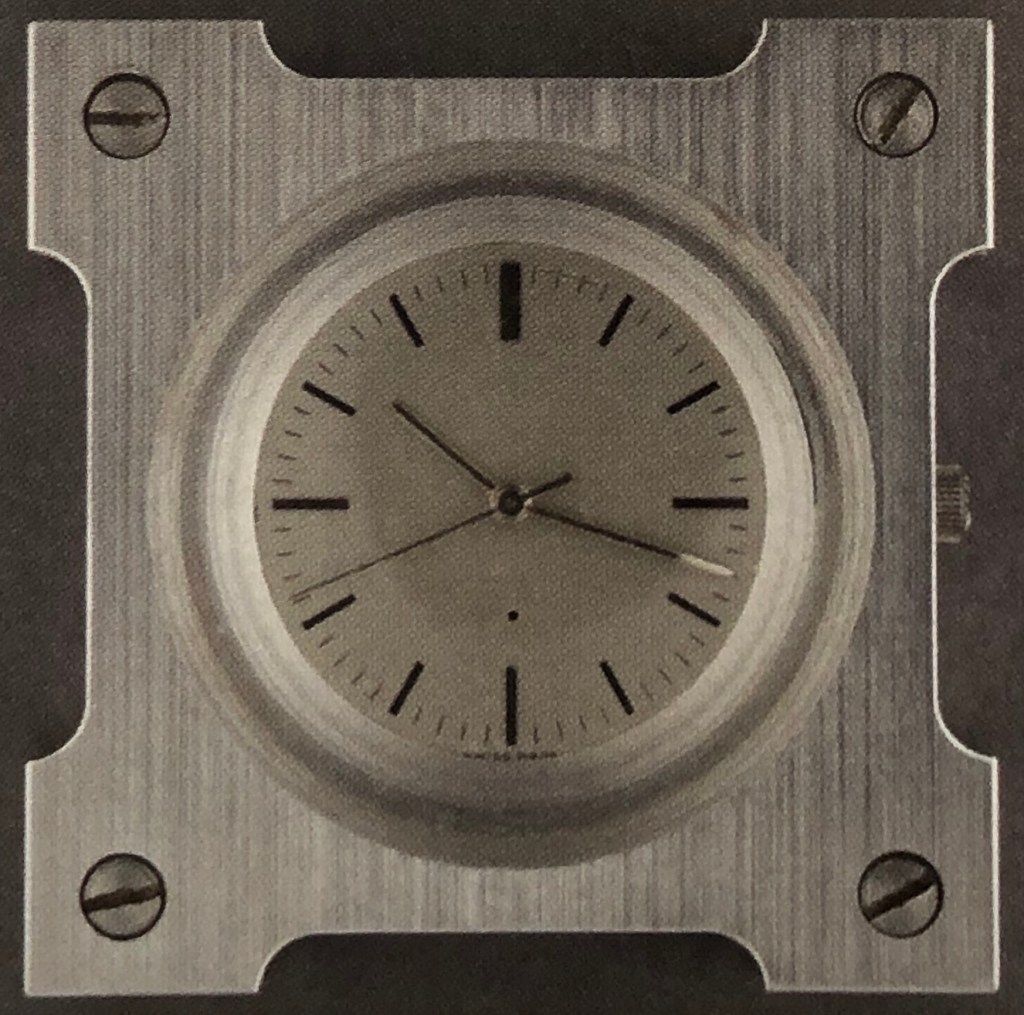 Because it was a large movement and 6.2 mm thick, the initial watches driven by the Beta 21 movement were quite unusual in design. Most featured thick rectangular cases, with quite a few being angled so the dial faced the wearer. Thanks to the rectangular shape of the movement, it was difficult to package a Beta 21 movement in a round case. IWC’s round Basel Fair design would be dropped in favour of a rectangular (‘International‘) or hexagonal (‘Da Vinci‘) case soon after. Patek Philippe’s model featured a unique case with a TV screen shaped dial, while the Rolex ‘Ref.: 5100, Texano‘ had a more traditional look apart from the lugs (2).