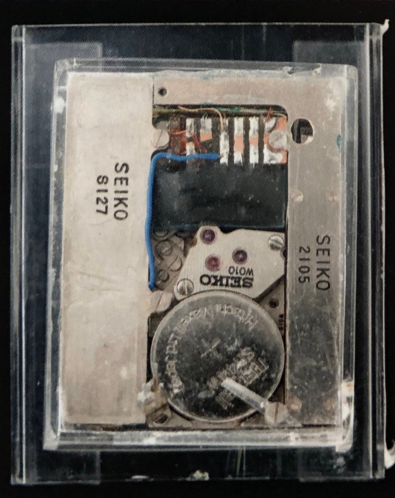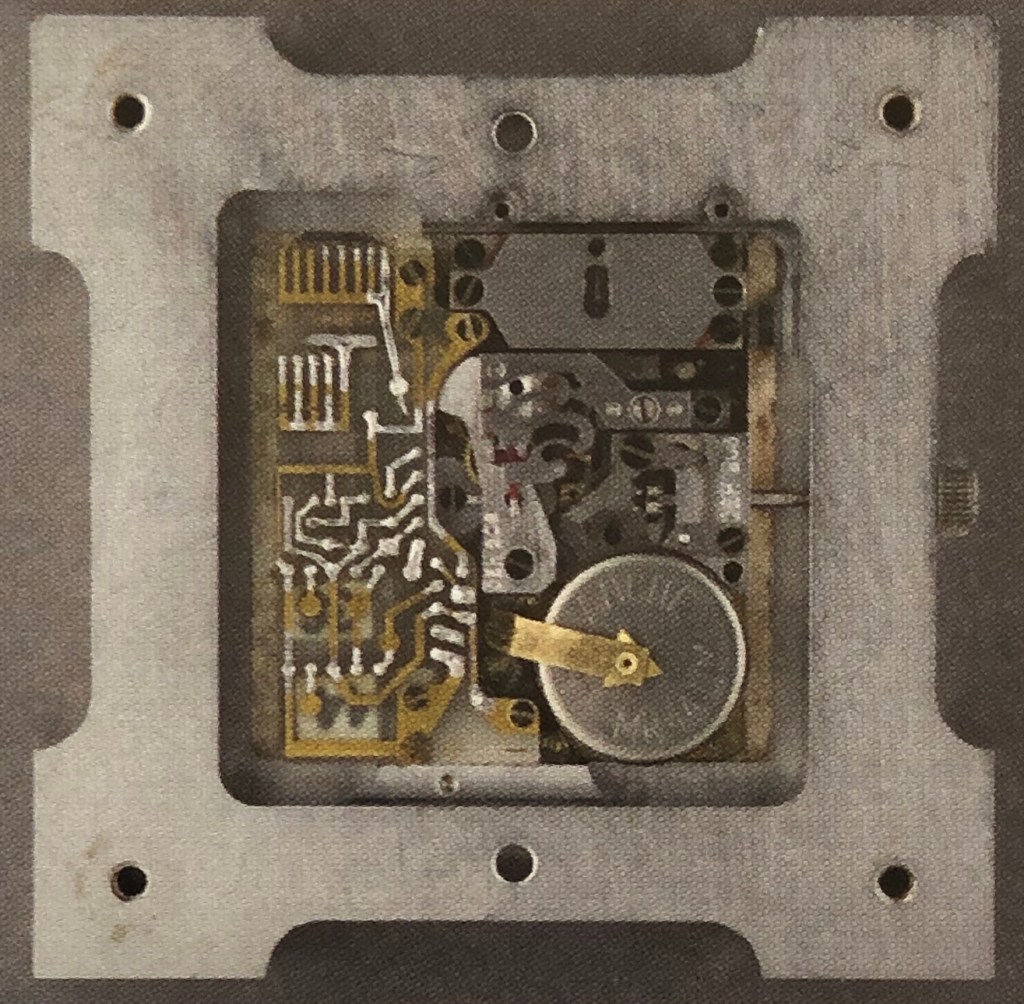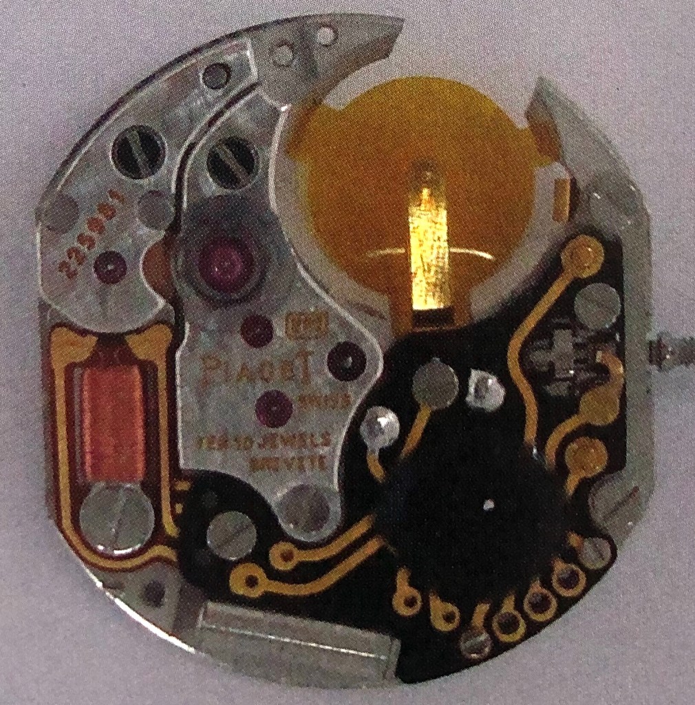 Beta 4, who’s first prototype was presented in November 1972 (8), was a major advancement, using a 524 KHz quartz resonator and more-advanced digital tuning system based on the Beta 3. Put into production by Piaget (Complication SA) in their cal.: 7P (1976) and cal.: 8P (1981) (10), it used volatile RAM to store the tuning information. This was adjusted using a special external timing station, which sent digital pulses to the RAM using magnetic coupling, similar to how Qi wireless charging works today (2).