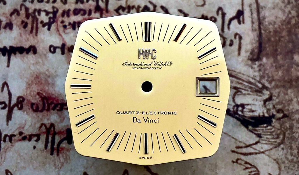 Additional info: Omega made the 587 Beta 21 movements later distributed to IWC, but as mentioned above, IWC developed their own designs to market their first electronic watch. One model was named ‘International’ another model took up the name ‘Da Vinci’, already used for a former, mechanical model line. One further model was called ‘electronic’ and was marketed as a pocket watch.