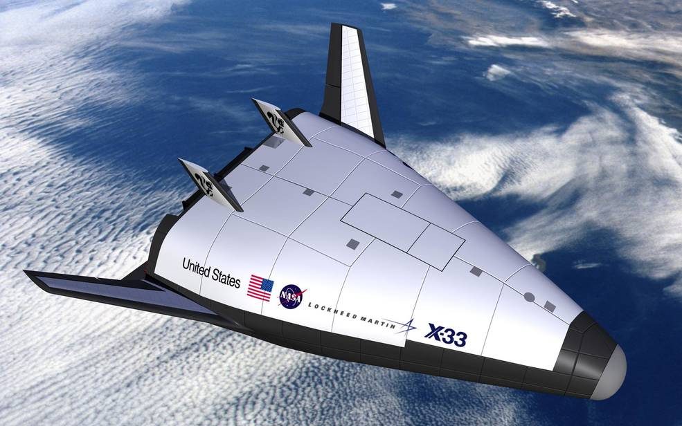 Artist’s conception of the Lockheed Martin X-33 Prototype. NASA considered design submissions from Rockwell, Lockheed Martin, and McDonnell Douglas. NASA selected Lockheed Martin’s design on 2 July 1996. Picture credit: Lockheed Martin Illustration