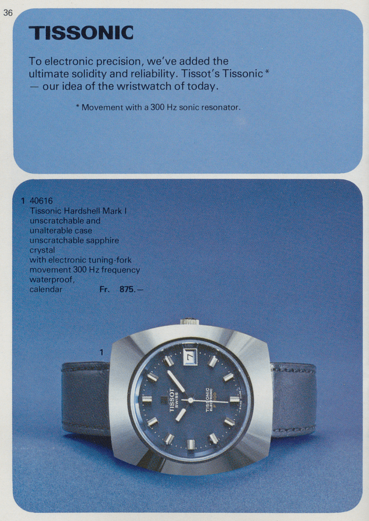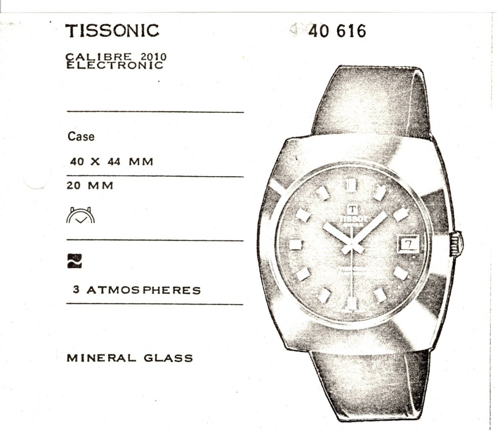 As confirmed by the Tissot heritage service, the tungsten- carbide cased model has indeed been marketed between late 1975 and 1977. The public sales catalogues from this periods show the available Tissonic versions (1).