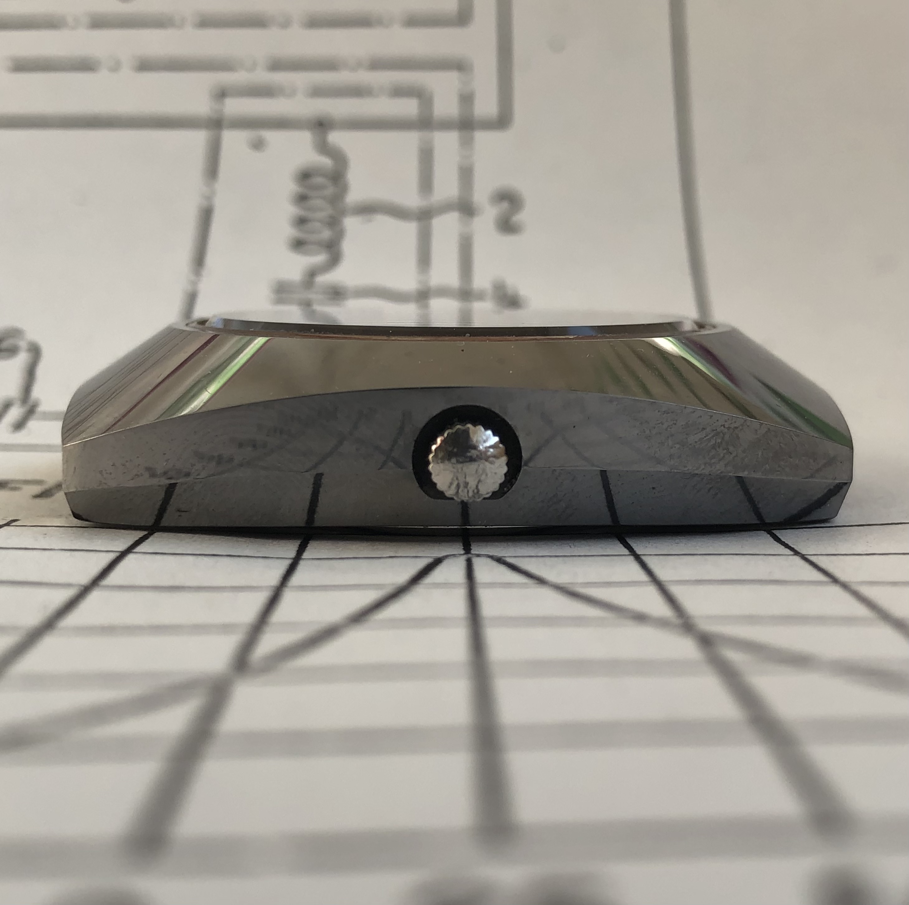 The decision of Tissot to release a model cased in tungsten – carbide in 1975 surely has influenced the direction in which Omega would proceed with the further development of what would become their ‘Cermet’ model. This and the aforementioned release of the ‘DiaMaster’ model by Certina could be the explanations for the radical design shift between Omega Cermet prototypes P2 and P3.