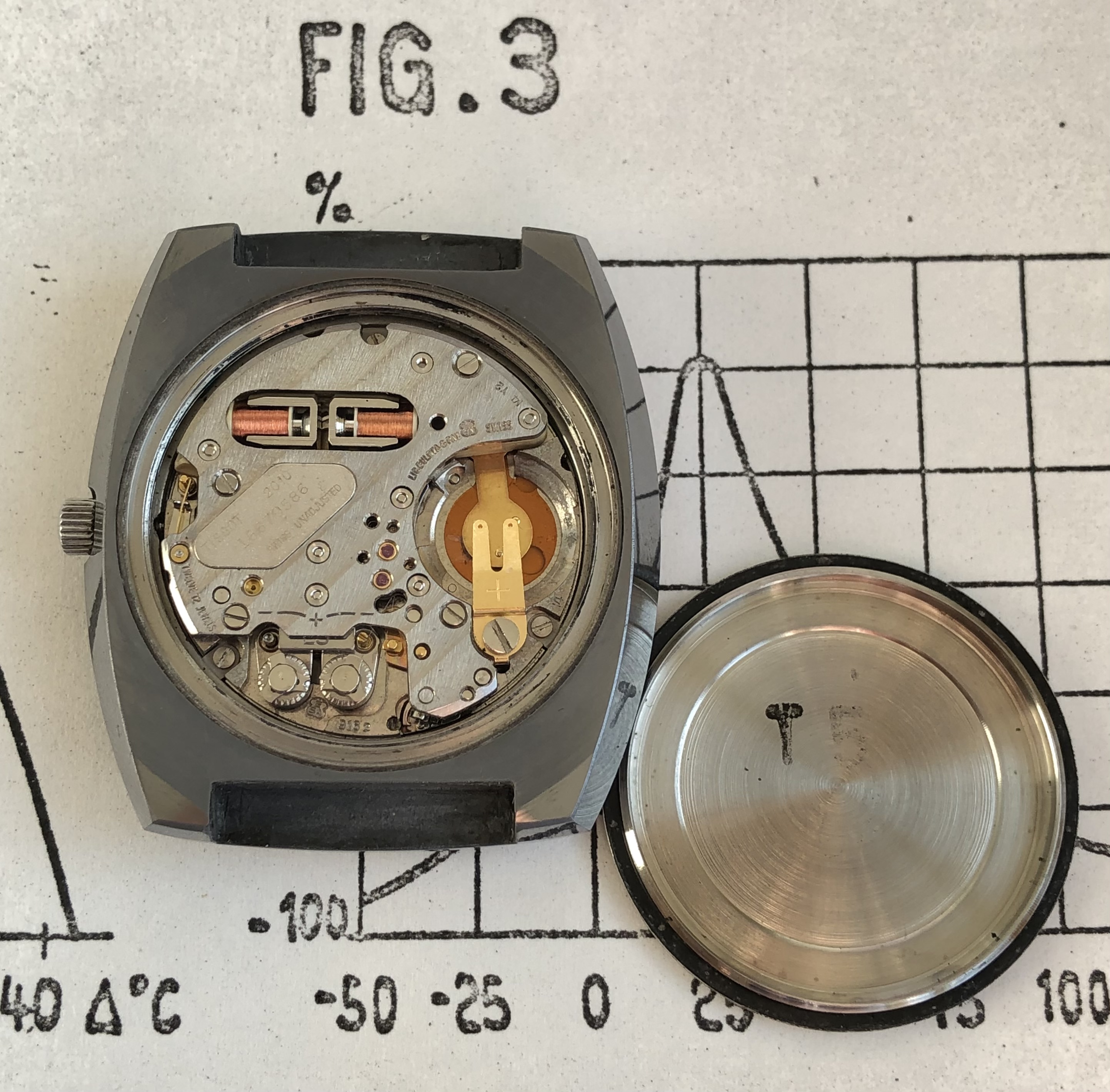 Movement: Tissot cal.: 2010 (ESA 9162, tuning fork), #16679586 (1973)